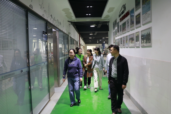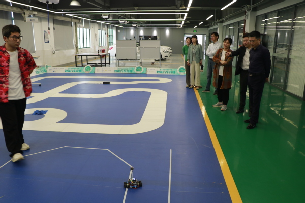 在汽车工程学院,调研组通过“看、查、谈、听”四维工作法展开深度调研。